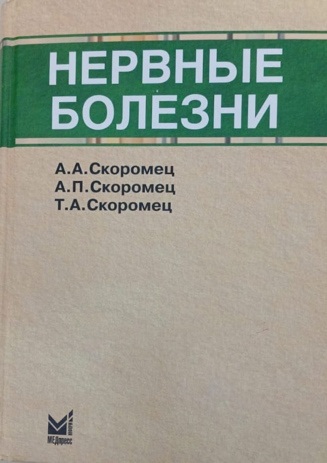 Нервные болезни [Текст] : учебное пособие / А. А. Скоромец, А. П. Скоромец, Т. А. Скоромец. – 9-е изд. – М. : Медпресс-информ, 2005, 2007, 2010, 2014, 2016. – 544 б., 560 б.